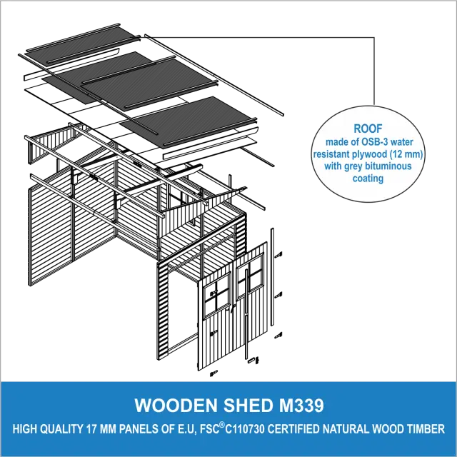 Tehnične specifikacije neobdelane lesene lope M339 (s 3 stranskimi stenami):