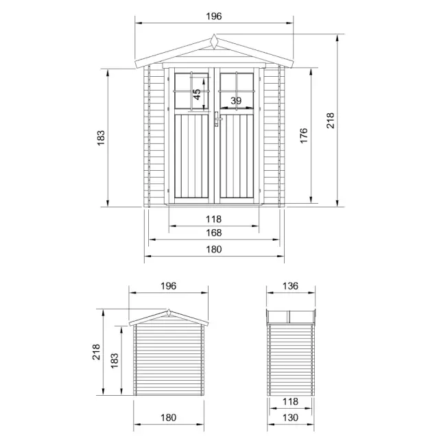 - Zunanje mere brez strehe: D180 x Š130 cm