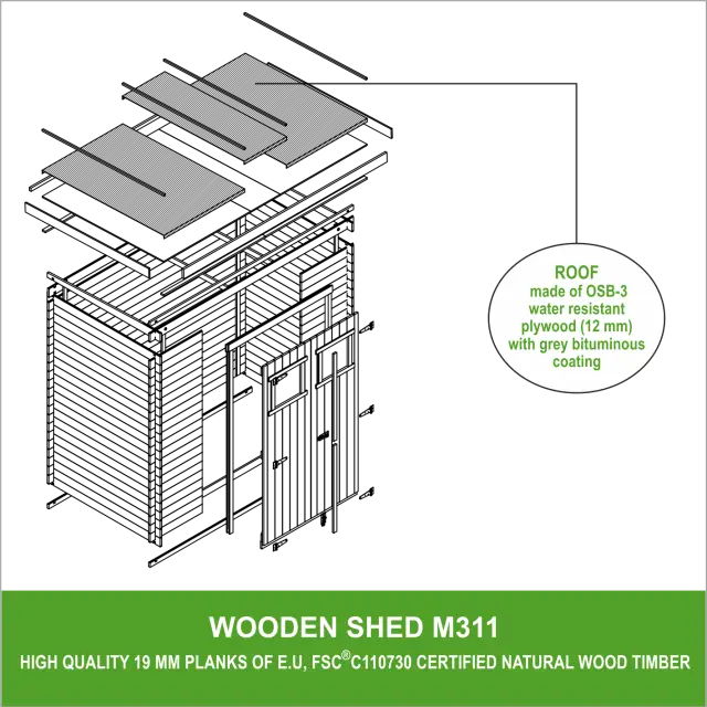 Enostavna montaža – sestavljanje vaše nove vrtne shrambe je preprosto zaradi vnaprej narezanih lesov in podrobnih navodil za namestitev. Kombinacija navzkrižnih kotov in prepletanja peres in utorov je primerna celo za začetnike navdušence nad domačimi izdelki.