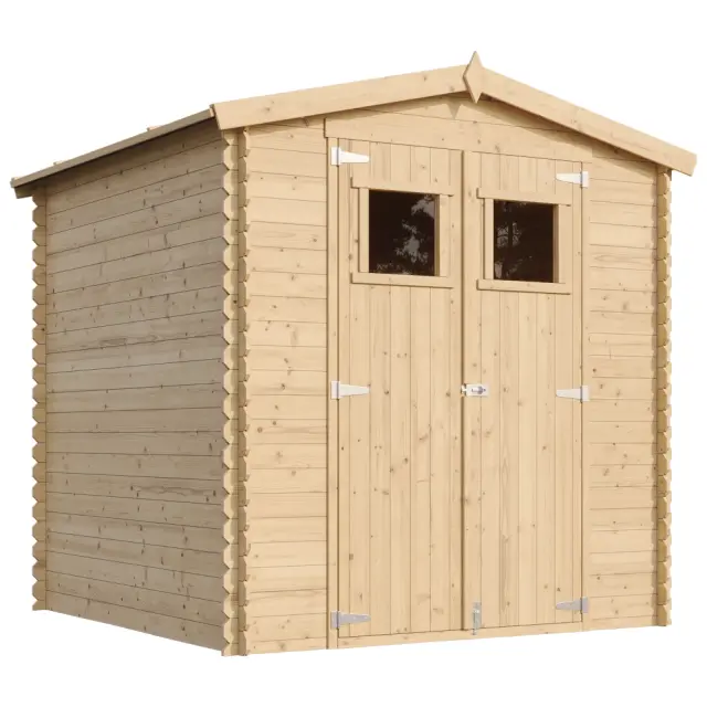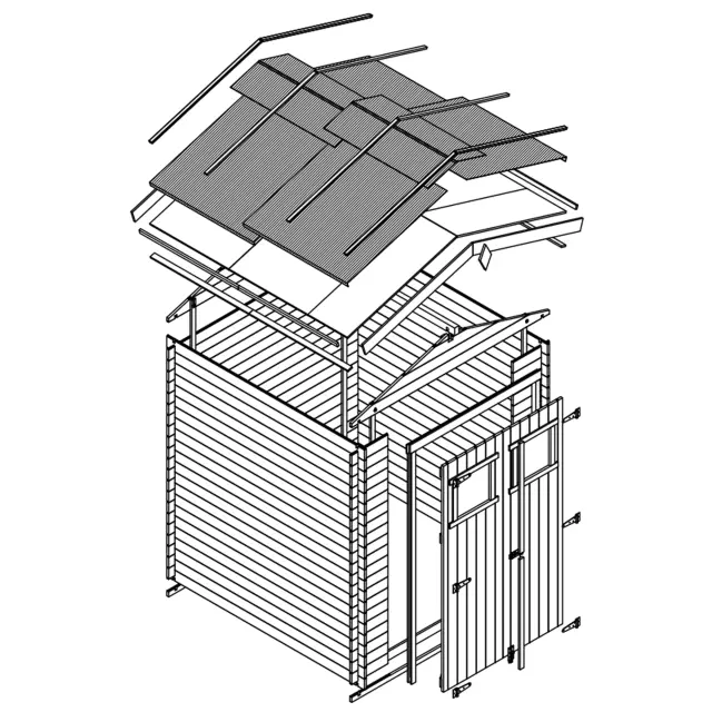 - Vsi leseni deli so dobavljeni neobdelani. Med montažo je treba les premazati s sredstvom za zaščito lesa, da preprečimo gnitje. Zunanjost mora biti takoj po namestitvi prebarvana s pigmentiranim lakom za zaščito lesa z odprtimi porami.