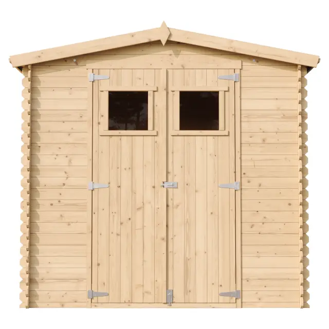 - Vsi leseni deli so dobavljeni neobdelani. Med montažo je treba les premazati s sredstvom za zaščito lesa, da preprečimo gnitje. Zunanjost mora biti takoj po namestitvi prebarvana s pigmentiranim lakom za zaščito lesa z odprtimi porami.