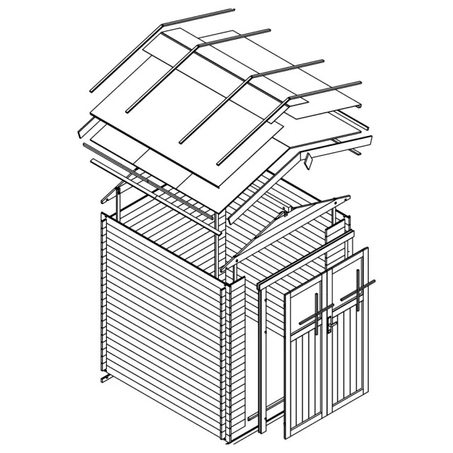 Tehnične specifikacije neobdelane lesene lope M369F z visokokakovostnimi vrati na zaklepanje: