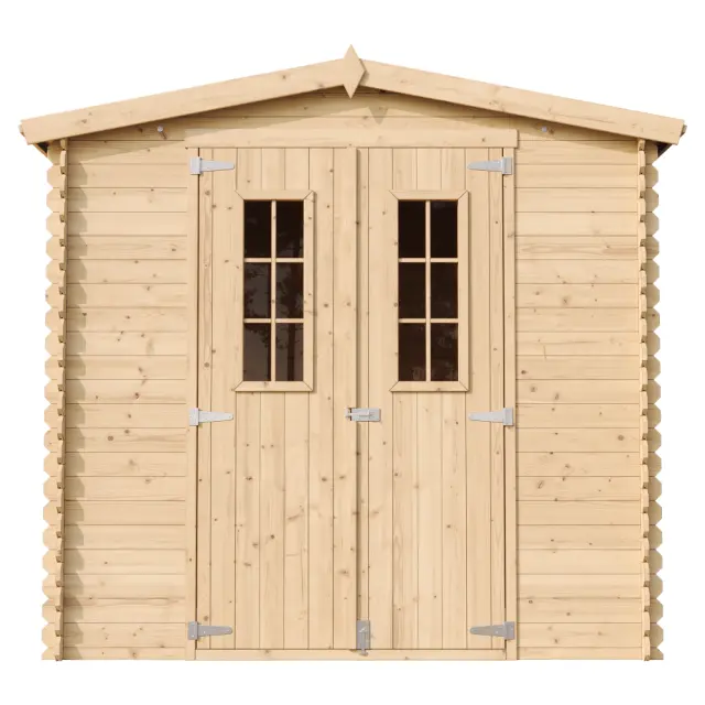 - Vsi leseni deli so dobavljeni neobdelani. Med montažo je treba les premazati s sredstvom za zaščito lesa, da preprečimo gnitje. Zunanjost mora biti takoj po namestitvi prebarvana s pigmentiranim lakom za zaščito lesa z odprtimi porami.