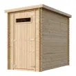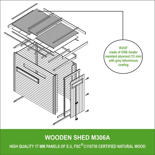 - Vsi leseni deli so dobavljeni naravni. Pri montaži je treba les premazati s sredstvom za zaščito lesa, ki preprečuje gnitje. Zunanjost prebarvajte takoj po namestitvi s pigmentiranim lakom za zaščito lesa z odprtimi porami.