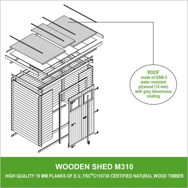 Tehnične specifikacije neobdelane lesene lope M310: