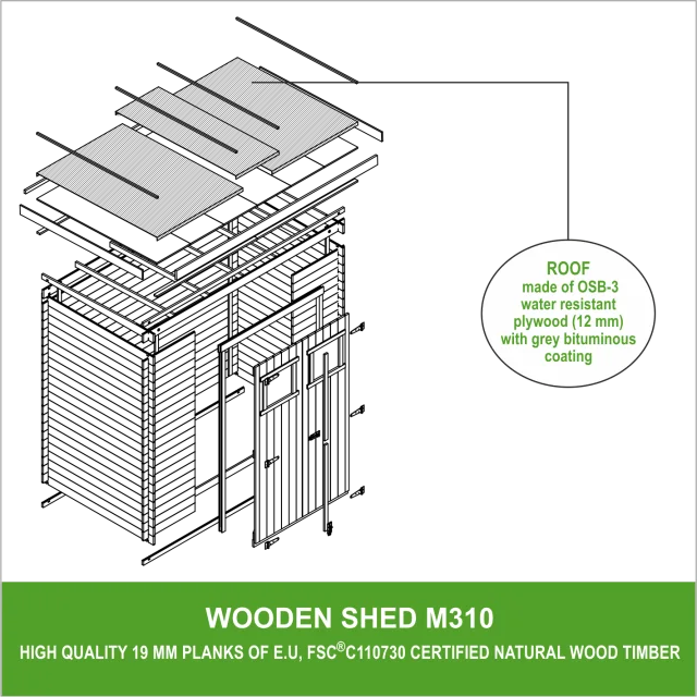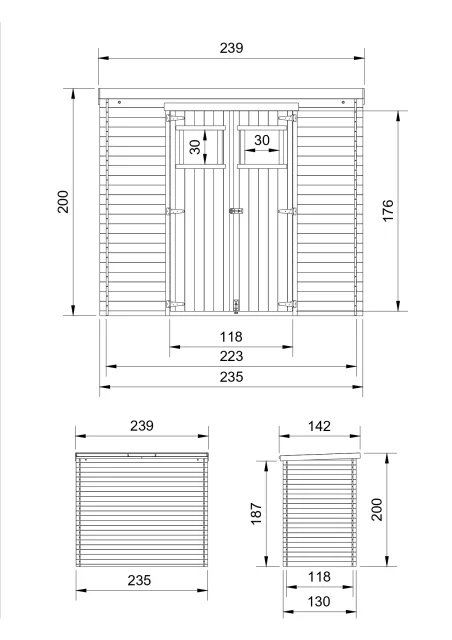 Lesena vrtna lopa - 239x142xH200cm/2.63 m2 - Vrtna hiša brez podov - TIMBELA M310