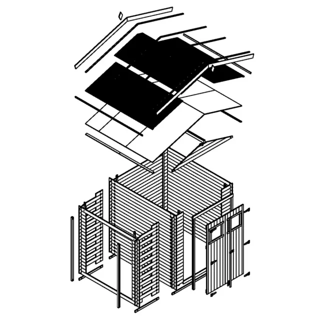 - Vsi leseni deli so dobavljeni neobdelani. Med montažo je treba les premazati s sredstvom za zaščito lesa, da preprečimo gnitje. Zunanjost mora biti takoj po namestitvi prebarvana s pigmentiranim lakom za zaščito lesa z odprtimi porami.