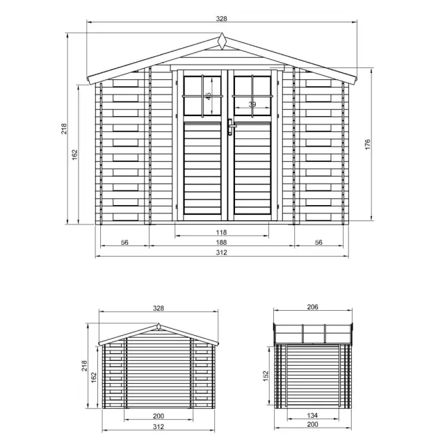 - Zunanje mere s streho: D328 x Š206 cm