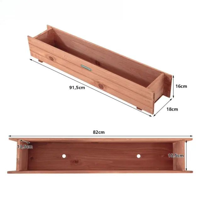 Prostorna in globoka dvignjena greda: ta dvignjena greda zagotavlja veliko prostora za rastline, da se globoko ukoreninijo, kar omogoča cvetlicam in zelenjavi, da uspevajo in rastejo. Poleg tega lahko zadržuje in ohranja vlago ter hranljivo zemljo, kar zagotavlja zdravo rast rastlin. Velikost izdelka je: 91,5 x 18 x 16 cm (d x š x v).