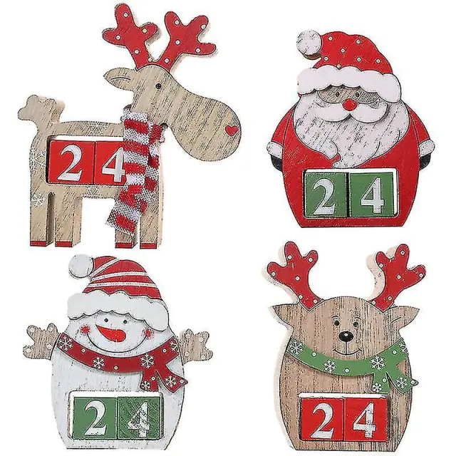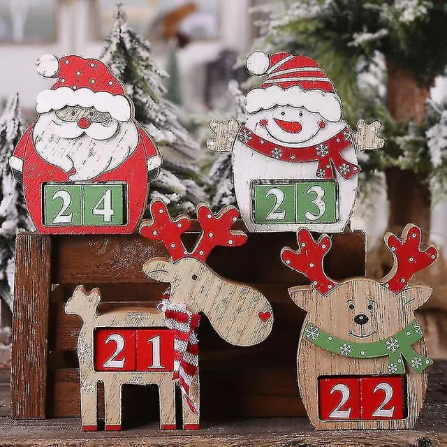 Leseni božični adventni koledar Večni božični koledar z odštevalnim koledarjem severnih jelenov, božični namizni okraski