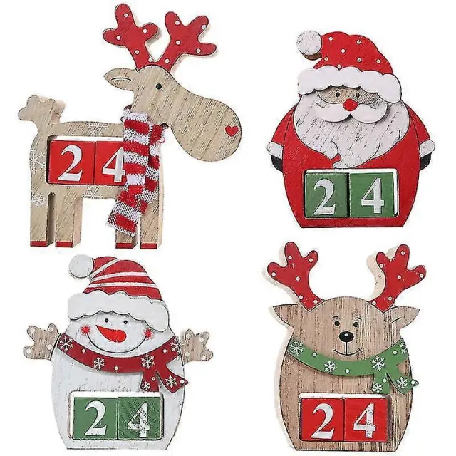 Leseni božični adventni koledar Večni božični koledar z odštevalnim koledarjem severnih jelenov, božični namizni okraski