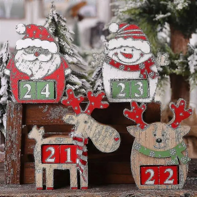 Leseni božični adventni koledar Večni božični koledar z odštevalnim koledarjem severnih jelenov, božični namizni okraski
