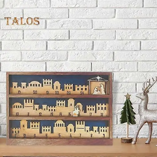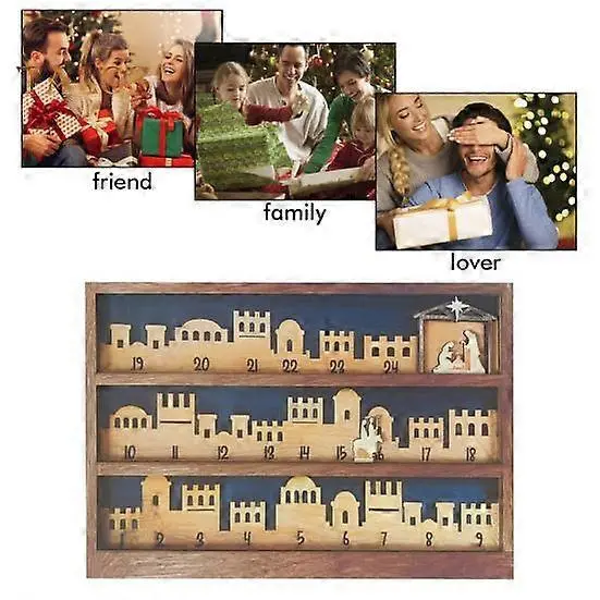 Leseni jaslični adventni koledar Jezusovo rojstvo 24-dnevni koledar z odštevanjem dni do božiča Namizni okras, znak, praznično darilo