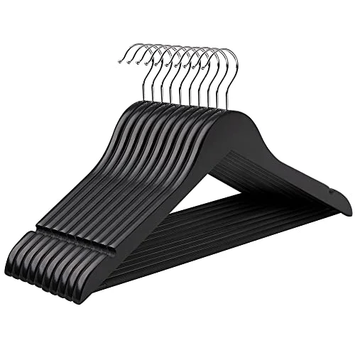Leseni obešalniki, set 10 kosov, obešalniki za plašče, obešalniki za oblačila, z ramo, protizdrsna palica, 360° kavelj za obleke, srajce, plašče, črna