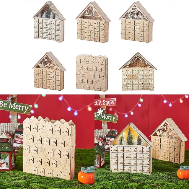 Leseni praznični namizni okraski Koledar z odštevanjem do božiča 24-dnevni adventni koledar Ustvarjalni koledarji z odštevanjem