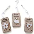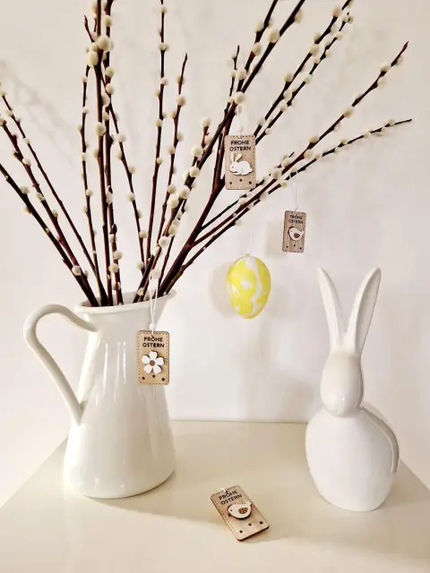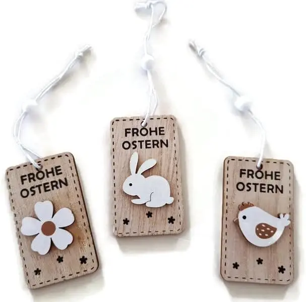 Leseni velikonočni obeski so čudovit dodatek za vaš dom v prazničnem času. Komplet vsebuje tri različne motive, ki vključujejo velikonočnega zajčka, velikonočnega piščančka in motiv spomladanskega cvetja. Ti izdelki so primerni za krašenje velikonočnega grmovja ali kot estetski dodatek pri zavijanju prazničnih daril. Zaradi uporabe naravnega materiala se obeski lepo podajo v vsak ambient in prinašajo pridih narave v notranje prostore.