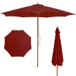 Iščete primeren senčnik za zabavo na prostem, piknik ali žar? Naš 300 cm dolg leseni senčnik z veliko senčno površino je odlična izbira za dejavnosti na prostem na terasah, terasah in vrtovih. Krošnja iz poliestra diha, je odporna na svetlobo in vodoodporna, zato boste v njej lahko uživali dolgo časa. Še pomembneje je, da je krošnja prezračevana, kar spodbuja kroženje zraka in izboljšuje stabilnost. V senčniku za zunanje terase pa je uporabljenih 8 močnih bambusovih reber, ki zagotavljajo močnejšo oporo. Poleg tega leseni drogovi našega tržnega senčnika zagotavljajo trdnost, hkrati pa ohranjajo svoj naravni videz. Stebri so snemljivi za enostavno namestitev in shranjevanje. Eden od vrhuncev tega zunanjega senčnika je njegov sistem škripcev, ki omogoča enostavno odpiranje in zapiranje senčnika. Nazadnje so na vrhu droga dežnika 3 luknje, ki vam omogočajo, da prilagodite višino glede na svoje potrebe.