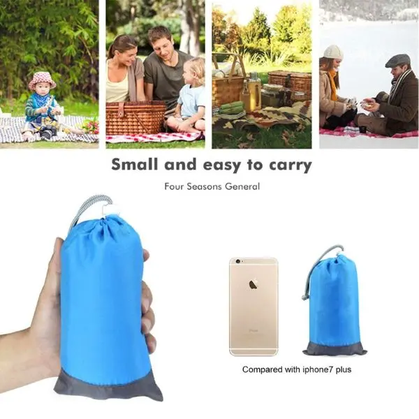 Ta vsestranska podloga lahko služi kot odeja ali preproga, pa tudi kot zavetje pred soncem ali dežjem. Popolna je za različne priložnosti in dejavnosti na prostem, kot so plaže, pikniki, parki, družinski izleti, športni dogodki, festivali na prostem, kampiranje, pohodništvo in ribolov.