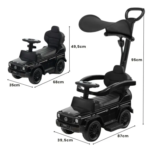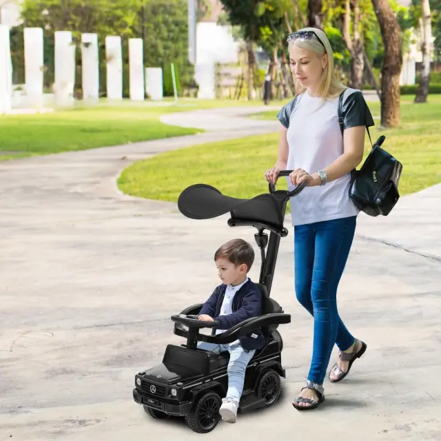 Licenčni otroški voziček Mercedes Benz z nastavljivim senčnikom in ročajem za starše Otroški voziček Black