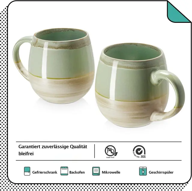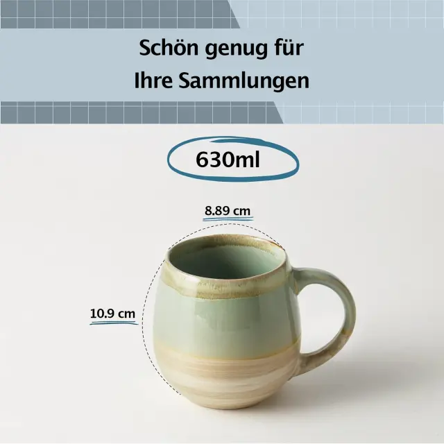 LIFVER velika skodelica za kavo iz keramike s prostornino 630 ml, paket 2 skodelic iz kamenine, velika skodelica za čaj za pisarno in dom, velike skod
