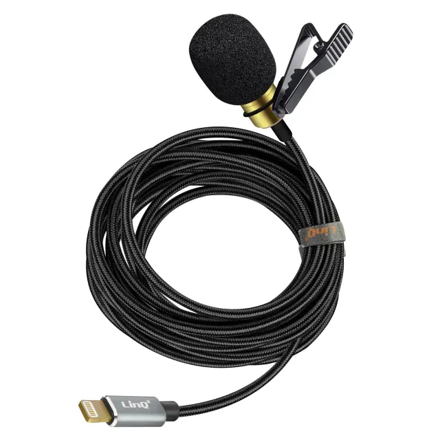 Mikrofon s sponko za kravato s priključkom Lightning znamke LinQ z vsesmernim snemanjem zvoka. Vrhunski in natančen zvok zahvaljujoč pokrovu visoke občutljivosti. Popoln za snemanje glasov, konferenc, videodnevnikov, intervjujev itd. Diskretna sponka in vrtenje za 360° za pritrditev na srajco ali kravato in v optimalen položaj.