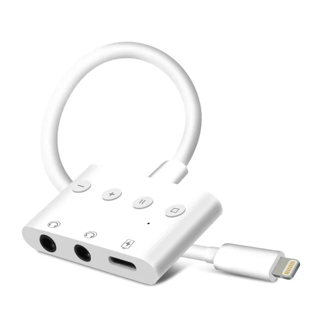 Lightning to Double Jack 3,5 mm in Lightning 12 cm avdio in polnilni adapter, gumbi za upravljanje razdelilnika, HL-104 - bel