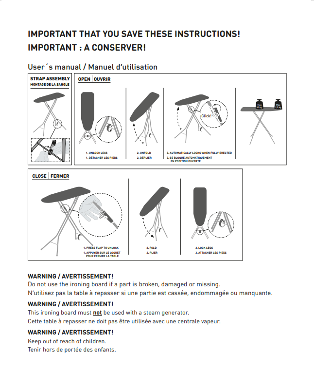 Naša nova patentirana namizna likalna deska Tempo je zasnovana tako, da olajša vsakodnevno likanje. Zahvaljujoč domiselnemu dizajnu je odpiranje in zapiranje deske preprosto kot še nikoli. Poskrbljeno je tudi za shranjevanje: Tempo je opremljena s kavljem, ki omogoča enostavno obešanje v omari, ko ni v uporabi. Za vašo varnost ima robusten zapiralni mehanizem, ki noge drži trdno v odprtem položaju. Vse naše prevleke za likalne deske so izdelane iz 100‑odstotnega bombaža in imajo certifikat OEKO‑TEX.