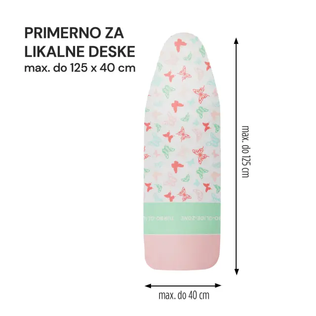 Prevleka za likalno desko IronPro bo spremenila vašo izkušnjo likanja. Vrhunska bombažna prevleka, je narejena, da traja. 5 slojev združuje kvalitetne materiale in inovativno tehnologijo. Spoznaj "turbo" cono, ki skrajša čas likanja, saj omogoča hitrejše drsenje likalnika po deski, zaupaj aluminijasti plasti, ki odlično odbija toploto, da lahko oblačila likaš le na eni strani in dosežeš popolno tkanino brez gub. Prevleka ima tudi posebej zasnovano površino za odlaganje vročega likalnika do 10 minut pri 200°C brez poškodb in je prevlečena s PET filmom, ki preprečuje kapljanje ter vodne madeže. Kombinacija naštetega optimalno poveča zmogljivost likanja in omogoča pari, da prodre globje v tkanino ter hitreje in z manj napora odstranjuje gube na oblačilih ali drugih tkaninah.