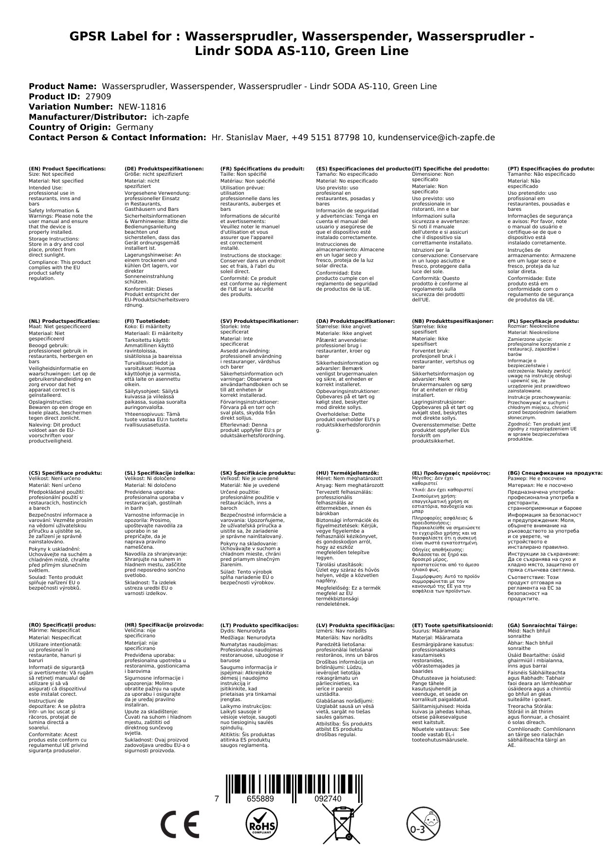 Lindr SODA AS-110 Green Line predstavlja vrhunsko rešitev za profesionalne prostore, kot so restavracije, gostilne in bari. Kot wassersprudler, wasserspender in trinkwassersprudler v enem združuje funkcije priprave gazirane vode in hlajenja pijač, kar zagotavlja hitro in zanesljivo oskrbo.