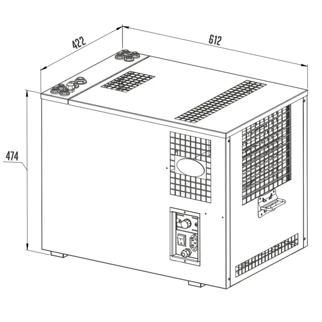 Osrednje značilnosti vključujejo kompresor z močjo 1/3 HP / 860 W, ki dosega maksimalno hlajenje 110 l/h in kontinuirano 60 l/h. Z banko ledu 10-20 kg lahko hkrati hladi tri vrste pijač, vključno z gazirano vodo do 110 l/h. Dolge hlaječe cevi (2x16 m) omogočajo enostavno integracijo v obstoječe sisteme.