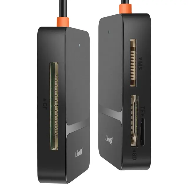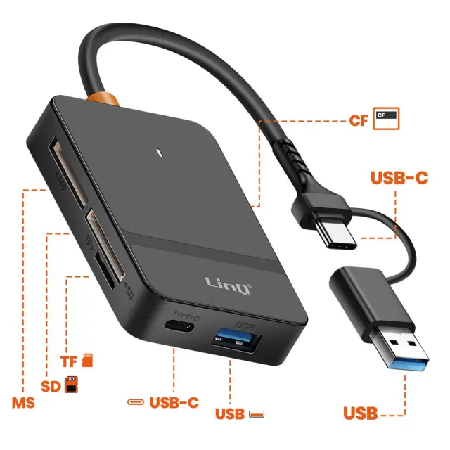 LinQ, 8-v-1 hub za branje kartic USB in USB-C s funkcijo polnjenja pametnega telefona, Črna