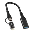 Povežite naprave USB-C in Lightning z napravo USB s tem 2-v-1 OTG adapterjem podjetja LinQ. Idealen za priključitev različnih perifernih naprav USB, kot so pomnilniške kartice, miške, krmilne palice, zunanji trdi diski itd.. Izkoristite hitrosti prenosa do 5 Gb/s za takojšnjo izmenjavo podatkov. Deluje z vsemi napravami, opremljenimi z vrati USB-C in Lightning, kar zagotavlja zanesljivo povezavo.