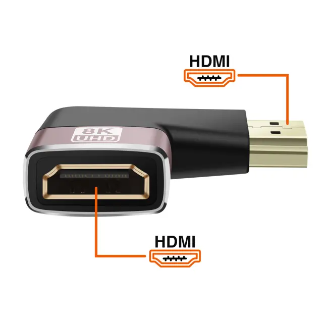 Ločljivost do 8K UHD za optimalno kakovost slike na vseh vrstah zaslonov, televizorjev ali projektorjev. Priključek HDMI, nagnjen pod kotom 90°, za lažjo povezavo v ozkih prostorih ali ob steni. Robustna konstrukcija z ohišjem iz zlitine in pozlačenimi konektorji za stabilen prenos. Združljiv s predvajalniki Blu-ray, konzolami, prenosnimi računalniki, televizorji, multimedijskimi napravami in video projektorji..