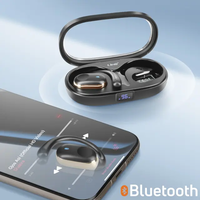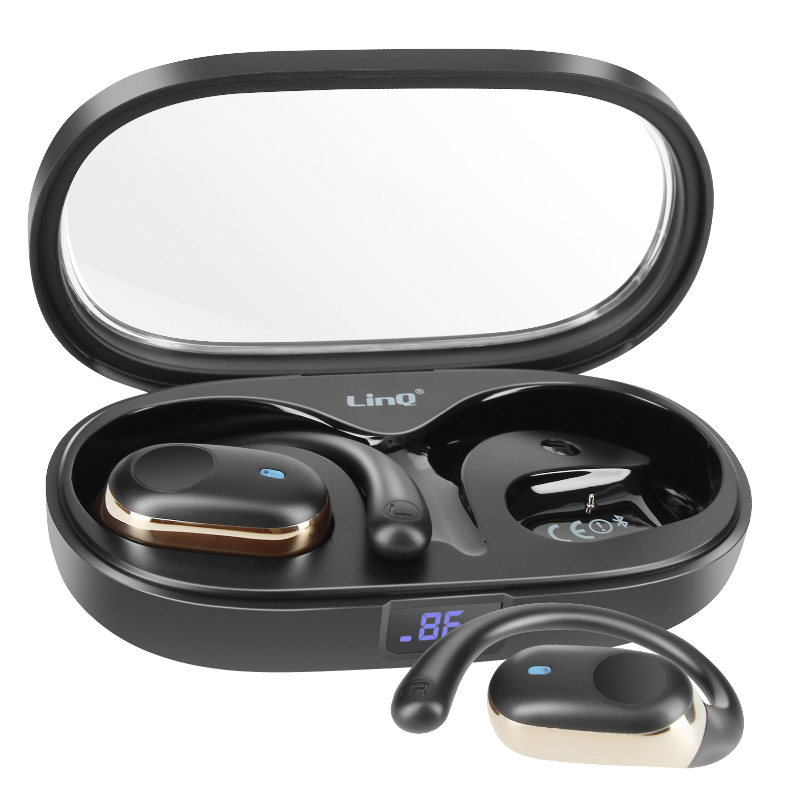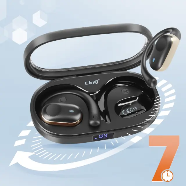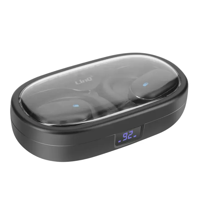 LinQ, Brezžične slušalke z zračnim prevodom Brezžične slušalke z LED zaslonom za polnjenje, Črna