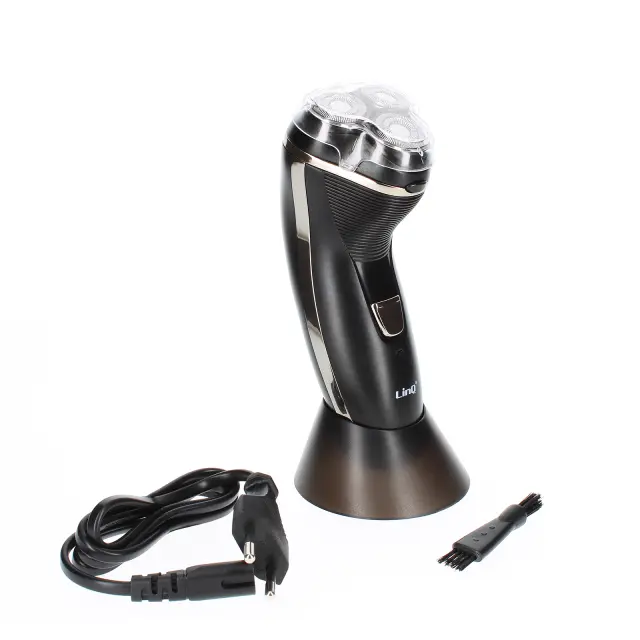 Brezžični električni brivnik, preprost in praktičen za vsakodnevno britje.. 3 vrtljive glave brivnika vam nudijo prilagodljiv stik s konturami obraza, kar zagotavlja udobno in učinkovito britje.. Prisotnost čistilne krtače olajša vzdrževanje britvice in zagotavlja čistočo rezil.. Življenjska doba baterije 50 minut, to trajanje omogoča večkratno uporabo..