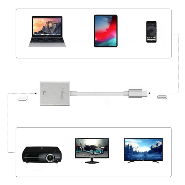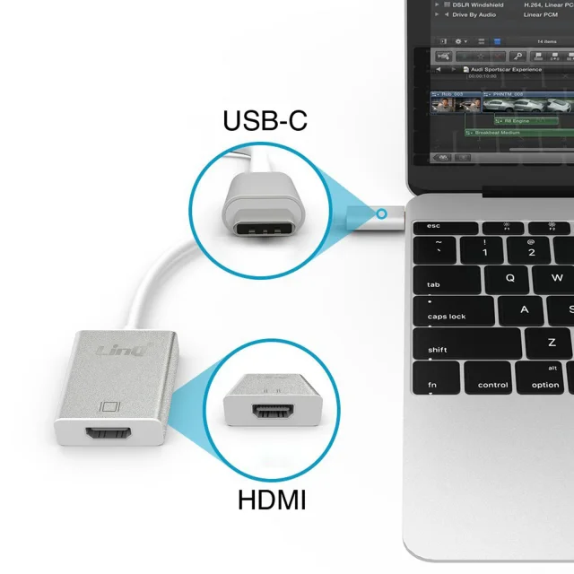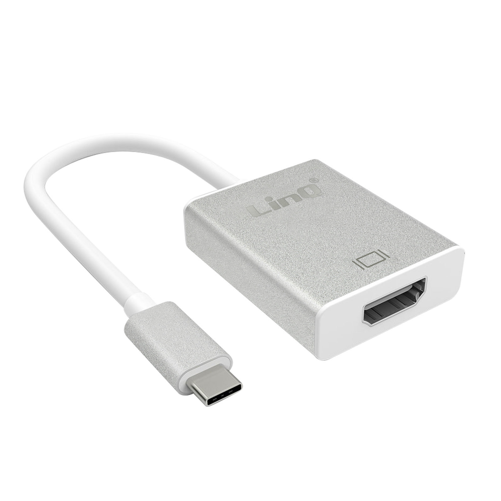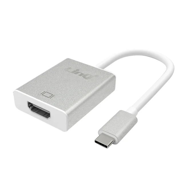 LinQ kabel USB tipa C v HDMI 4K, ženski video adapter, 15 cm srebrne barve