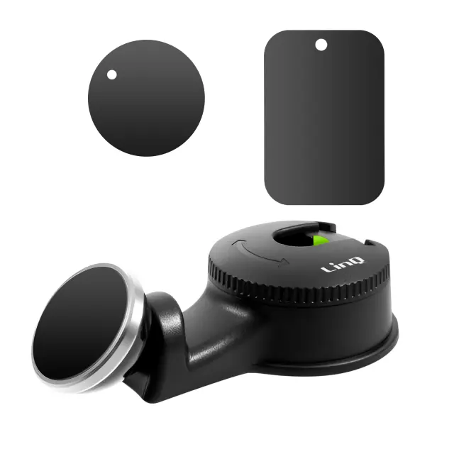 Magnetni nosilec za avto LinQ, namenjen zabavi potnikov na vsakem potovanju. Varno se pritrdi med eno od palic naslona za glavo, orodje ni potrebno. Obračanje za 360° za nastavitev telefona pod idealnim kotom za udobno gledanje. Priložena sta dve kovinski plošči za takojšnjo uporabo.