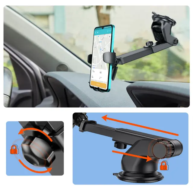 Imejte svoj mobilni telefon v vidnem polju s tem avtomobilskim nosilcem podjetja LinQ, ki se s priseskom pritrdi na armaturno plošco/vetrobransko steklo. 360° samodejno vrtljivo stojalo z nastavljivo roko za optimalen kot gledanja. Raztegljivi rocaji z gumbom za zaklepanje.