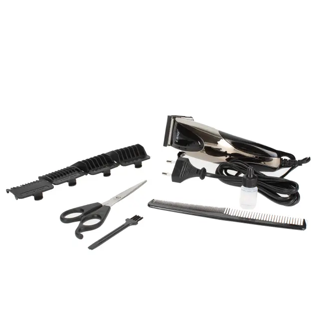Profesionalni strižnik na kabel za čiste reze. Popoln je za redno nego las.. Ima 4 zamenljive glavnike različnih dolžin (3-6-9-12 mm), ki omogočajo natančno prilagoditev dolžine las.. Primerno tako za otroke kot za odrasle.. Priložen je glavnik, škarje in čistilna tekočina..