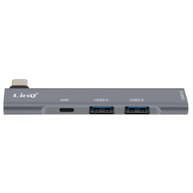 LinQ, Razdelilnik USB C 4 v 1 s 60W polnjenjem USB C in 3 priključki USB 3.0 in 2.0, Srebrna