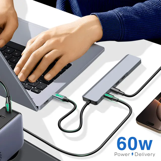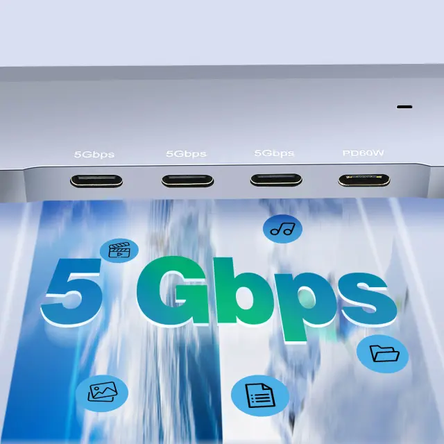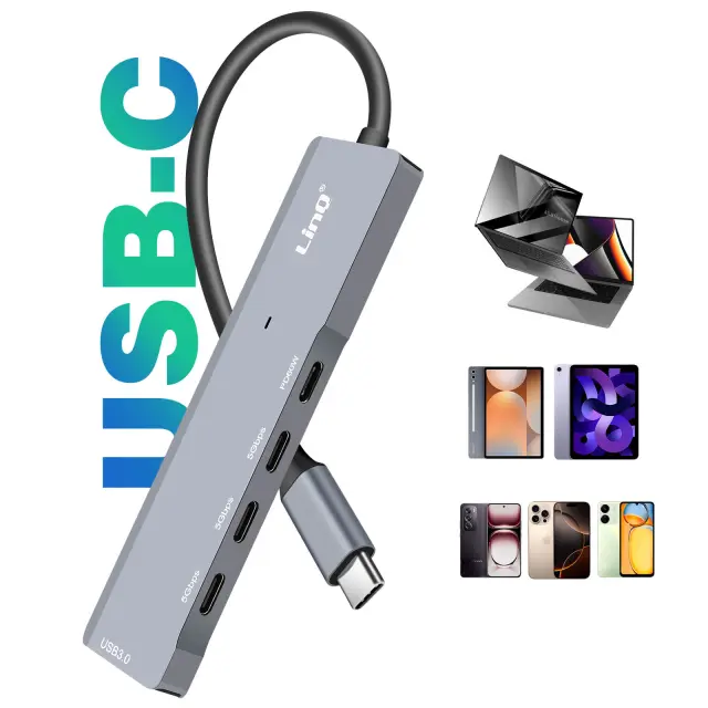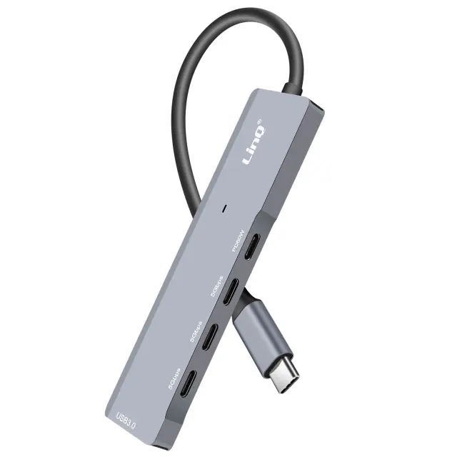 LinQ, Razdelilnik USB-C OTG za 3x USB C 5Gbps + USB 3.0 + USB C Power Delivery 60W, Črna