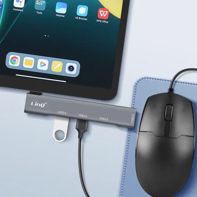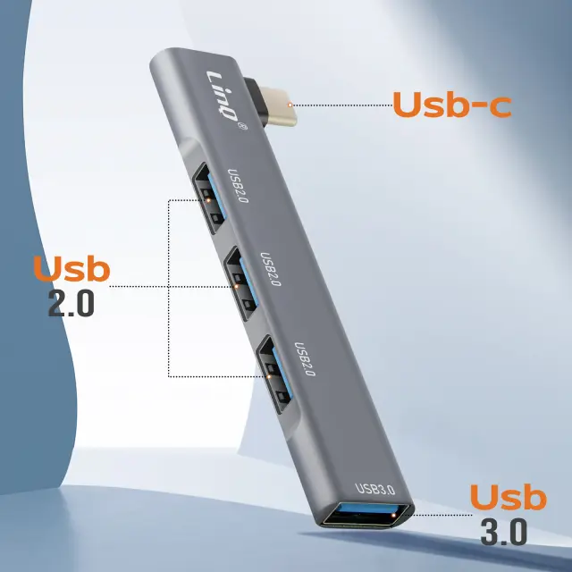 LinQ, USB C HUB adapter za MacBook s 4x USB 3.0 5Gbps OTG, Srebrna