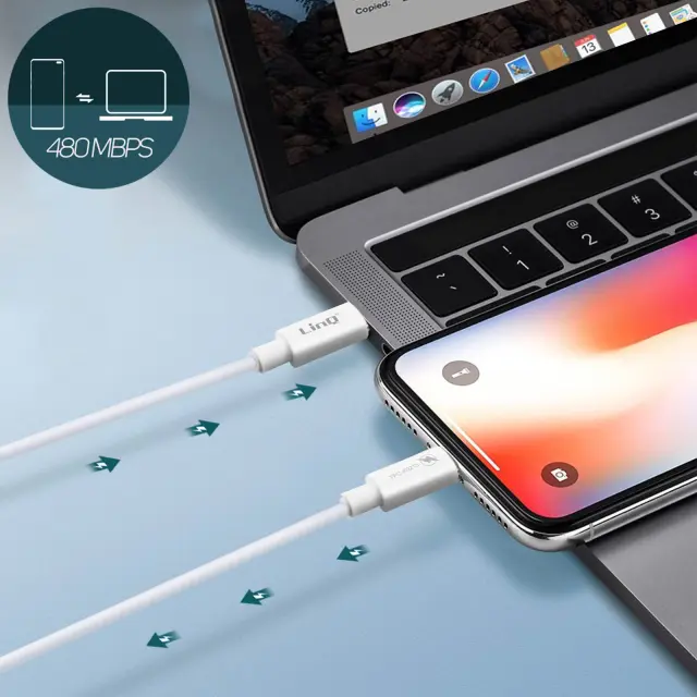 Kabel, posebej zasnovan za polnjenje in sinhronizacijo, blagovna znamka Linq.. Združljiv s hitrim polnjenjem Power Delivery 60W (20V/3A): v 30 minutah iPhone napolni do 50 %.. Združljiv z vsemi napravami Lightning: iPhone, iPod, iPad. Omogoča hkratno polnjenje baterije in sinhronizacijo podatkov.