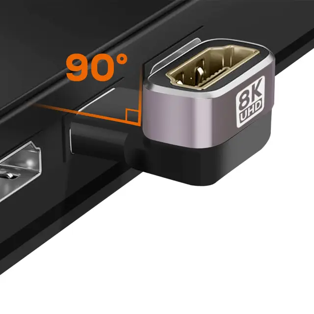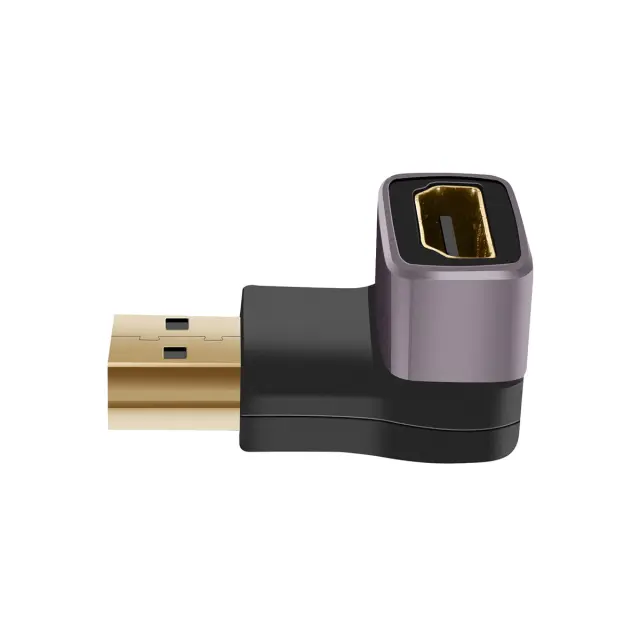 Ta adapter zaradi navpičnega kota 90° preusmeri kabel HDMI navzdol in tako ohrani vrata v tesnih prostorih.. Zaradi združljivosti s HDMI 2.1 podpira ločljivost 8K UHD pri 60 Hz in je še vedno združljiv s 4K UHD in Full HD.. Pozlačeni konektorji optimizirajo kakovost video signala in zmanjšujejo oksidacijske izgube. Kompaktna velikost omogoča enostavno priključitev na stenske televizorje ali naprave, nameščene blizu ovire..