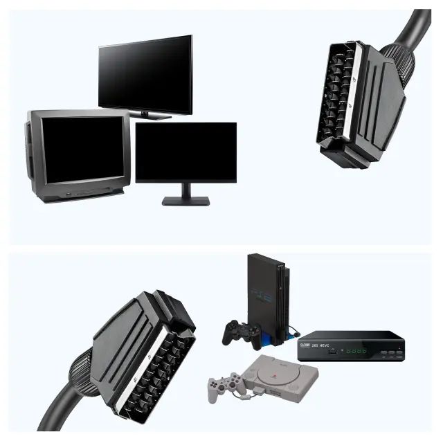Kabel LinQ Scart za medsebojno povezavo dveh naprav z vhodi Scart. Zagotavlja visokokakovosten prenos videa in zvoka brez motenj. Velika dolžina 3 m za veliko prilagodljivost pri namestitvi. Robustna zasnova je odporna na vsakodnevno obrabo in zagotavlja dolgotrajno nemoteno uporabo.