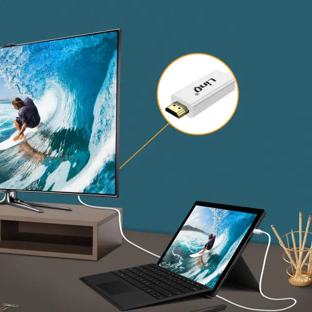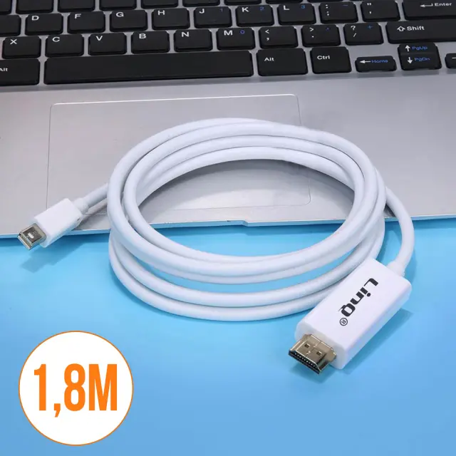 Video kabel Mini DisplayPort Male s HDMI Male, ki ga je zasnoval LinQ, model MDH18. Povežite prenosni računalnik ali tablični računalnik z monitorjem, televizijskim zaslonom ali video projektorjem.. Mini DisplayPort je združljiv z računalniki Apple MacBook Air in Pro, iMac, Mac Pro, Microsoft Surface Pro in Book itd.. Podpira zvočne in video signale v digitalnem načinu (ločljivost do 2560x1600).