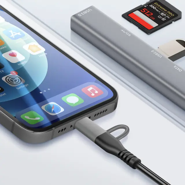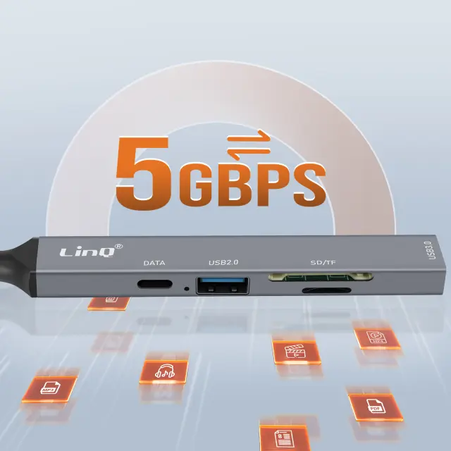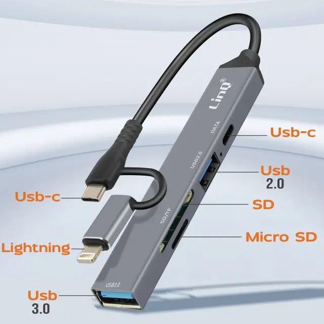 LinQ, Vozlišče USB-C in Lightning OTG 1x vrata USB-C + 2x USB + kartica SD / TF, Črna