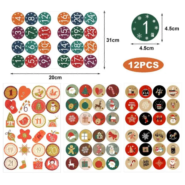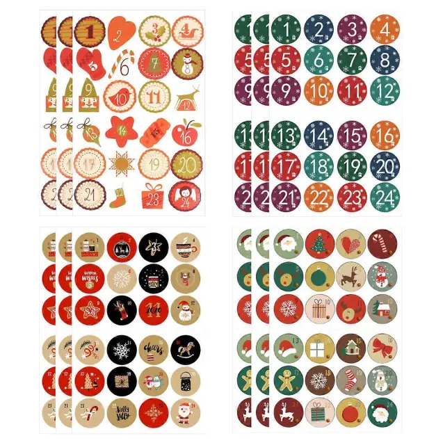 List nalepk s številkami božičnega adventnega koledarja z 288 nalepkami za božični odštevalni koledar DIY darila obrt božični okraski