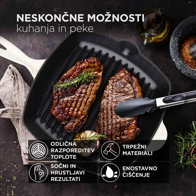 Za vse novodobne kuharske gurmane, ki od posode pričakujejo največ. Litoželezna ponev za žar Blacksmith's je odlična za pripravo sočnega mesa, rib, zelenjave ali druge jedi iz žara. Primerna je za vsa kuhališča, tudi za indukcijo in uporabo v pečici.