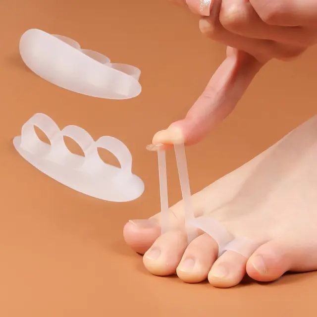 Lajšanje bolečin: Naši ločevalniki prstov na nogah učinkovito zmanjšajo bolečino in nelagodje, ki ga povzročajo zagozditve, kladivasti prsti, prekrivajoči se prsti in druga stanja stopal. Nežno poravnajo prste na nogah ter ublažijo pritisk in trenje.